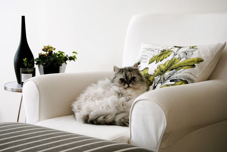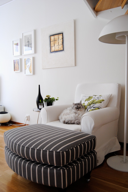 Here you have our hairy persian cat Bengt, six years old. He loves our furniture, here on a armchair from IKEA and a footrest from Englesson.