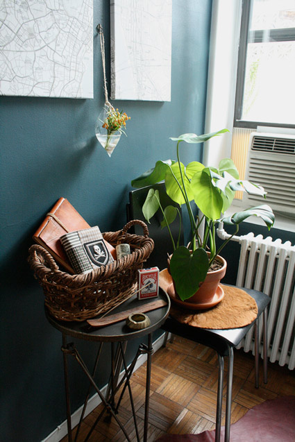 Ryuhei sent us the following email: I’m Ryuhei, a young interior designer based in Brooklyn, New York. I recently won Behr’s Room for Color 201o contest with the living room from my very first 2BR project. Since the rest of this vintage inspired, yet modern bachelor’s pad is now complete and my client has fully settled into the apartment, I took some photos that I would love to share. This budget 2BR makeover was designed for my friend – a typical, young professional who moved into a small pre-war tenement. As a team, we hoped to create an example of how good even an everyday space could look with some effort and creativity. This apartment is such a great example of using colour to provide interest to rather blah spaces (LOVE the living room colour), vintage finds for intrigue and a homey feel, and funky lighting that functions as art. Fab job Ryuhei!
