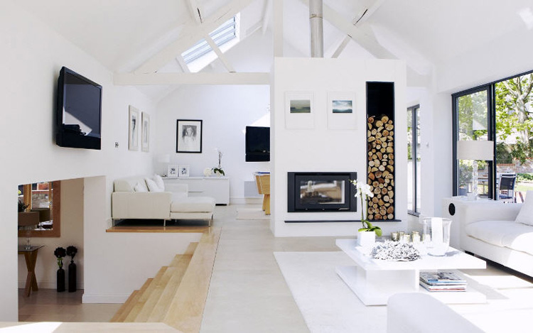 Now here’s a different take on Swedish white. A huge loft in Stockholm with soaring ceilings, skylights to dream about, a bookcase that makes my heart sing and a roaring fireplace. Eclectic is definitely the vibe here. Contemporary married with fine antiques, throw in tribal pieces and oriental finds, Scandi design and open plan on a grand scale and I’m hooked. Wouldn’t you love to snoop through the bookcase, pick up the knick knacks and turn them over, ask to crank the stereo way up. It may not be the place you’d want to make your home but don’t you just want to party! Oh imagine… night time, low light, fire burning, wine in hand and favourite music… and a couple of dozen of your best friends. For sale here. (Thanks for the link Daniela!)