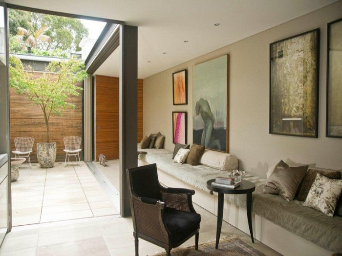 You would think after a whole week of stalking that I could stay away from real estate sites. No. I’m an addict. I must vicariously stalk. I must virtually peep through the curtains of complete strangers’ homes. Today I’m glad I did. Elegant, restrained, monochromatic and masculine. And so narrow! Clever use of the tiny courtyard. It’s luxury in a tiny gift box. You will find the link to this Paddington home here while it is still for sale.