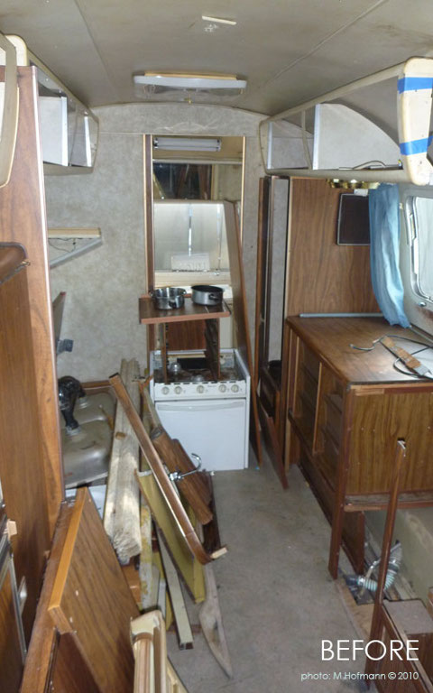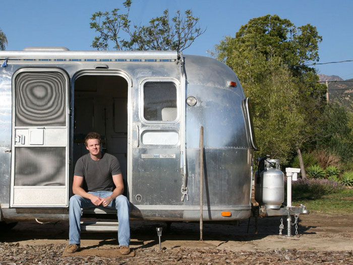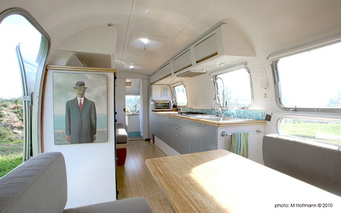 Can a girl go weak at the knees over a caravan? Oh please! This ain’t no caravan. She’s a sleek and shiny 70s era Airstream. This baby was lovingly restored by Santa Barbara architect Matthew Hofmann. She’s small, efficient, renovated with recycled and sustainable materials and is the live + work space for Matthew and his girlfriend. But most importantly she is sexy! Alas she wasn’t always this hot. More like hot mess as you will see after the jump.