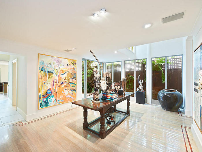 5 bedrooms, three bathrooms, great suburb (Darling Point, Sydney), huge house and most likely massive price tag. Stalking tends to be expensive. What I love most about this particular house though is not the space or its white brightness, its lovely courtyard and pool or the stunning “wilderness” of a garden. No what I drool over in this house is the art collection. Oh to have my own walls covered in such fabulous (and large) works. Perhaps I could just about afford the hall with the tribal pieces… perhaps 😉 Link here until it is sold.