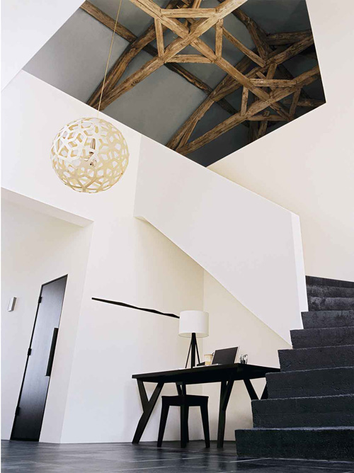 Hey! In the 2nd picture, that is a David Trubridge light hanging from the wood ceiling! That's my father-in-law 🙂 hehe