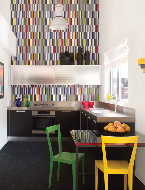 i love that wallpaper! with the stripes/whatnots/graphics (2nd last picture).