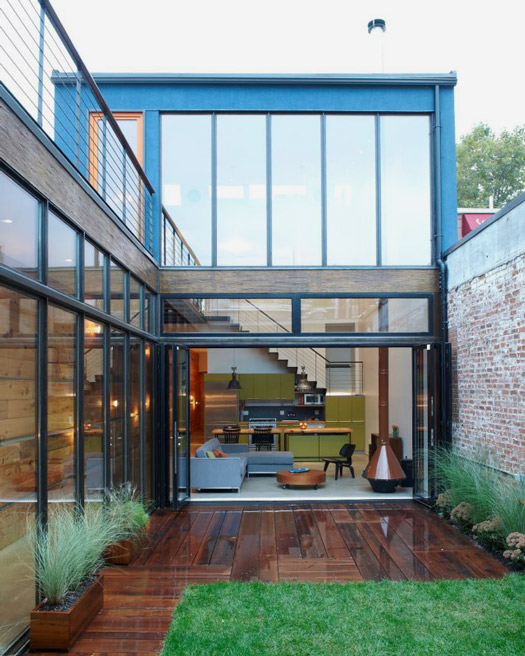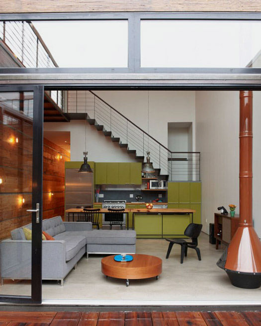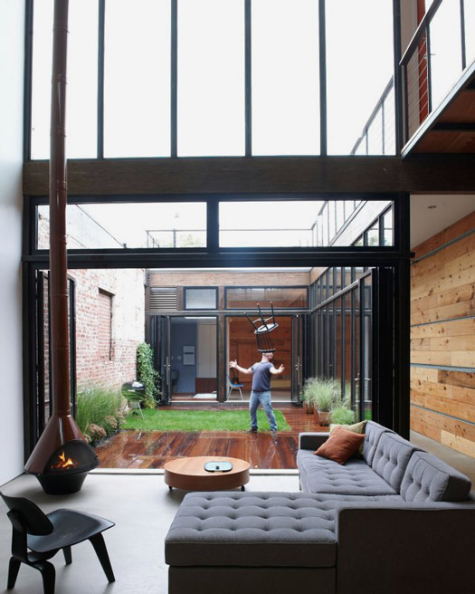 My brother-in-law Dave is always sending me links to homes that he has spotted on various websites, in the hopes that one day I’d find one worthy of blogging about. Well, I’m finally blogging one. He found the home here, but it was originally featured in New York Magazine. It’s the 2100 sq ft Brooklyn bachelor pad of “Blue’s Clues” star Steve Burns, designed by Mesh Architectures. I love the industrial feel, the exterior is totally rad, the catwalk on the second floor (inside and out) and the private courtyard. A home worthy of the pages of Dwell mag, if it hasn’t already been featured there.
