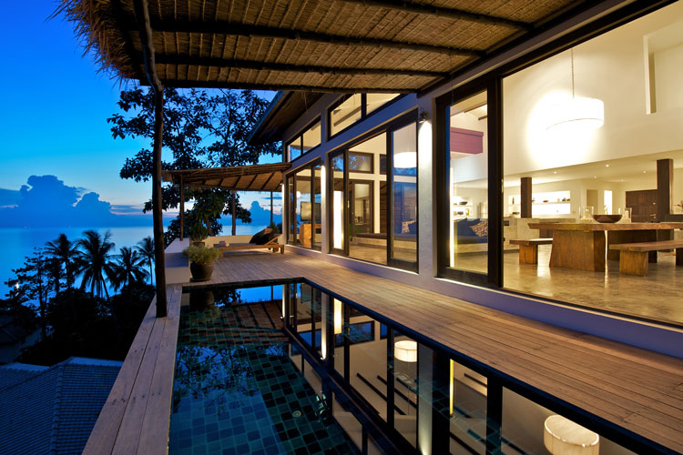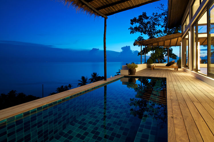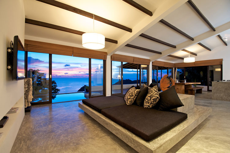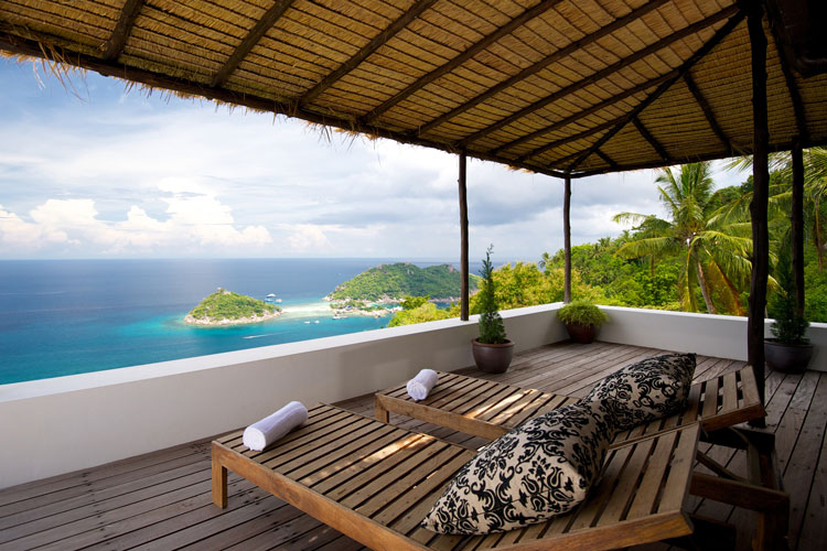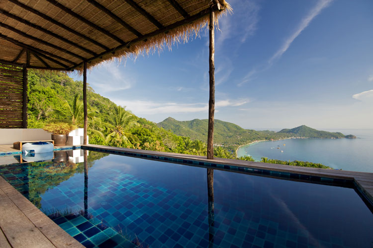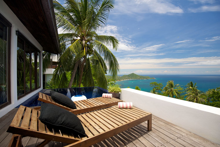 Australian designer Christina Saenz de Santmaria emailed us about Casas del Sol, the tropical contemporary villas on the island of Koh Tao, Thailand that she designed and had built during the last few years. They officially opened this month and are what Christina calls ’boutique beach chic’ = understated luxury within a modern tropical design that captures the sensory island experience of sea, sun and stars. The views are spectacular and I can’t imagine how incredible it would be to be able to enjoy this magical country from one of her dreamy villas. *sigh*