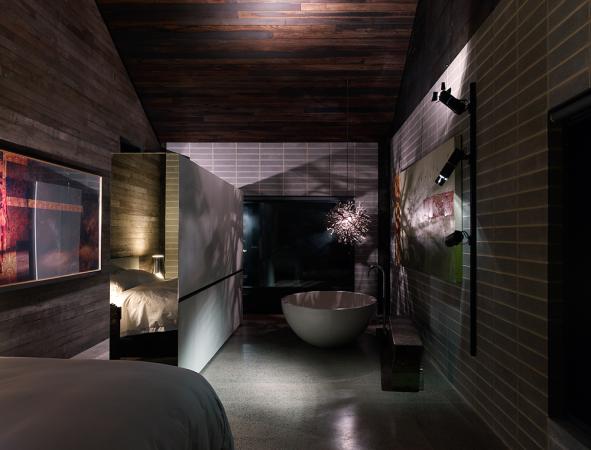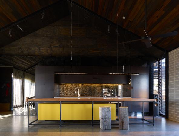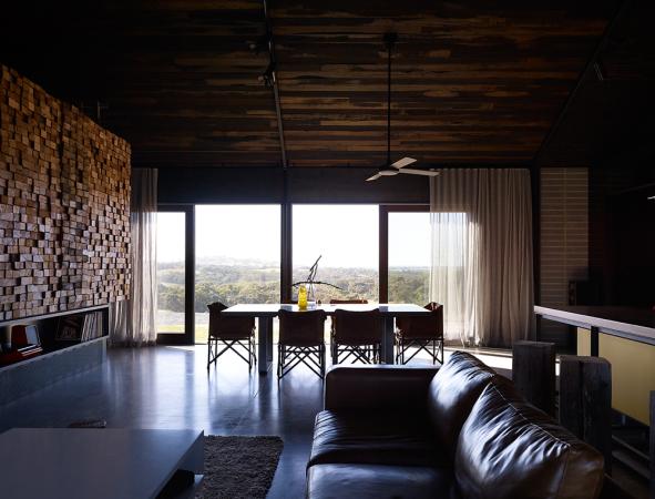 Cool, dark, sexy. Like a cold drink on a hot, hot day. A cave to escape the blaring sun. A shed sitting on a sunbaked Australian plain. A refuge from the harsh elements. A home. Another short listed entry in the 2011 Australian Interior Design Awards, Hill Plain House, Victoria by Wolveridge Architects. I would enter the dark side. Yes for this I would.