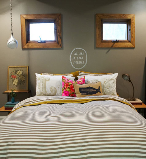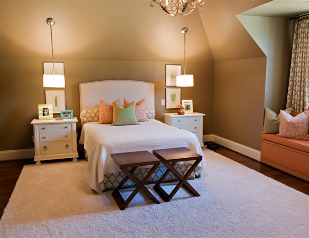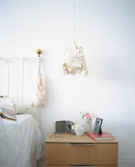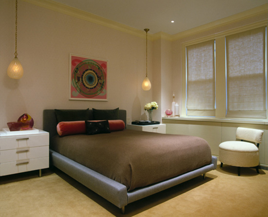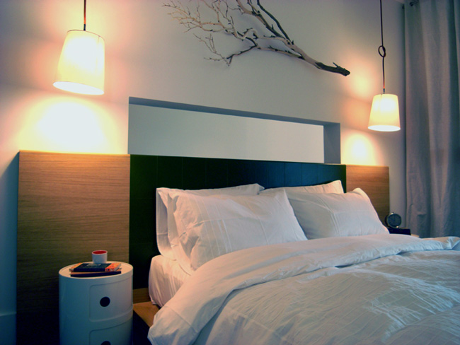 The previous owners of my house installed pendant lamps over the bed. Unlike most of these pics, the fixtures hang directly over the pillows (presumably the previous owners wanted to ensure they could read in bed). While they are practical for reading, they are an overall nuisance. The lights cast terribly unflattering shadows on our faces. When I flip on the switch in the morning, I feel as though a spotlight is being shone in my eyes. It's also frustrating to be tied to a particular furniture arrangement.