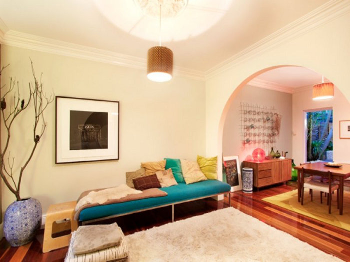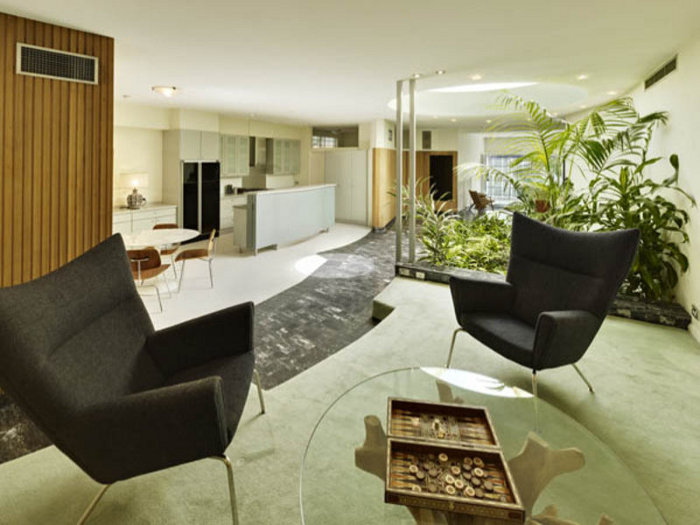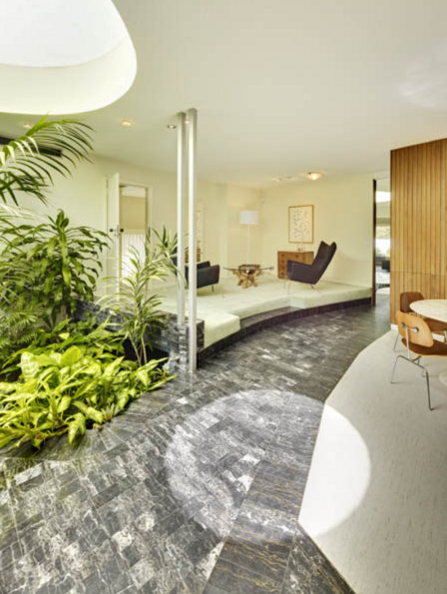 The Sixties baby! Sophisticated, sexy, open and radical radial plan. Design classics, indoor plants and a koi pool. What else could a stylin’ Sixties aficionado want? I wonder if they leave the curtains open or perhaps there is a high front fence because I would be walking and stalking past this original beauty every day with craned neck and tongue hanging out. Too cool! Link for this Centennial Park, Sydney home here while it lasts.