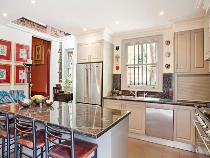 Traditional with a twist. Historic with a holy cow! Love the mix of lush, art filled traditional interiors with a pool straight from the here and now. Wow. Imagine the parties. Imagine the conversations around the dining table, the fabulous life of the occupants. Not my usual style but this one has me stopped in my tracks. I love stalking and I love stalking in Darlinghurst, Sydney. Link here while it lasts.