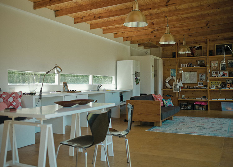 The following home was submitted to us by a devoted DTI reader, Seba D’Ovidio, and I freaking love it. The Rock Instrument House is Seba’s and partner Roy Garcia’s home located in the Delta of Tigre, near Argentina, Buenos Aires. It is 110 square metres of home/studio space built with Delta style classic materials like pine & machimbre wood and is surrounded by alamo trees. The glass-front can be fully opened. And if you are looking for a rad place to stay when you’re in the neighbourhood, Seba does rent it out when he’s not working there. I’m not sure what I like more, the home itself or the surroundings. Thanks Seba!! (Photos = Pablo Franco, Marc Fecchino, Model = Romina Senesi)