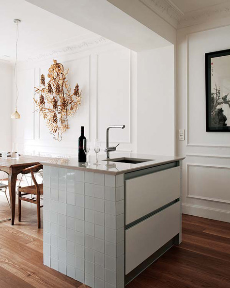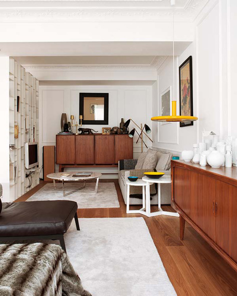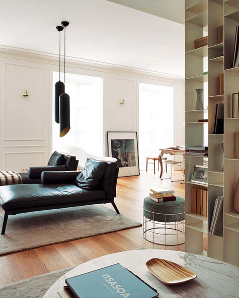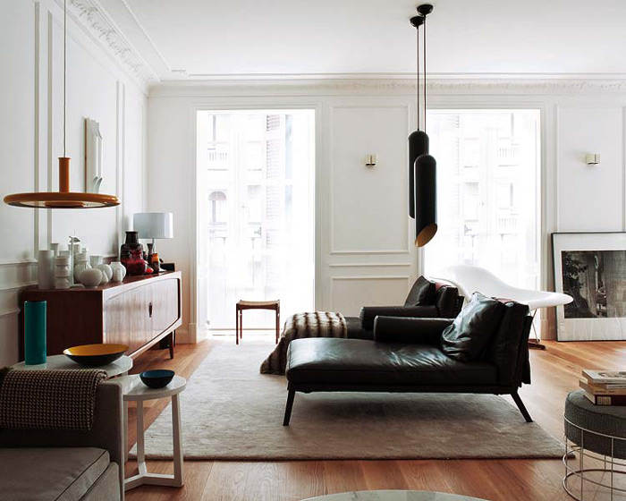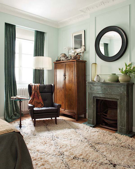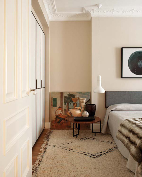 My previous post talked about a mix of styles. I found another home in keeping with that idea. This one is furnished from elements all over the world – a German chair, a Chinese stool, Balinese artifacts, a Provençal table mixed with Bertoia side chairs, even my favourite – Moroccan beni ourain rugs. Mikel Irastorza, the interior designer, has some rather large kahounas. 🙂 (Via Nuevo Estilo)