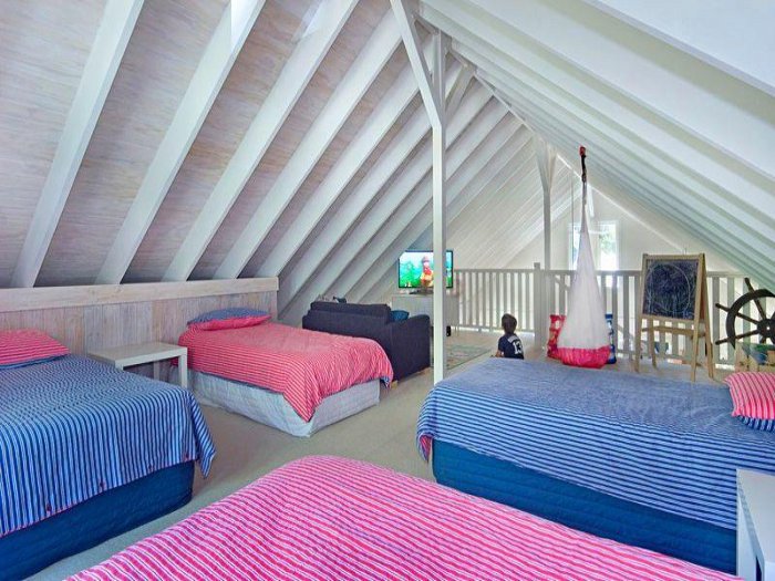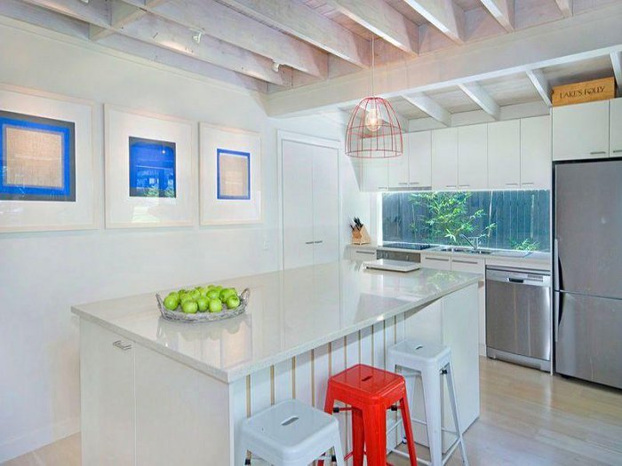 This is absolutely gorgeous–seriously, just stunning. The deluge of rainy weather in my current location has me craving a beach getaway (and perhaps the next plane to Australia, judging from this post). I love the high ceilings and open, airy feeling of the house, though I'm not sure how I feel about all of those beds in one room. The kitchen looks almost too immaculate for actual use with its fresh white walls and stainless steel features. That's it–time for me to beach stalk in the United States. =)