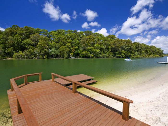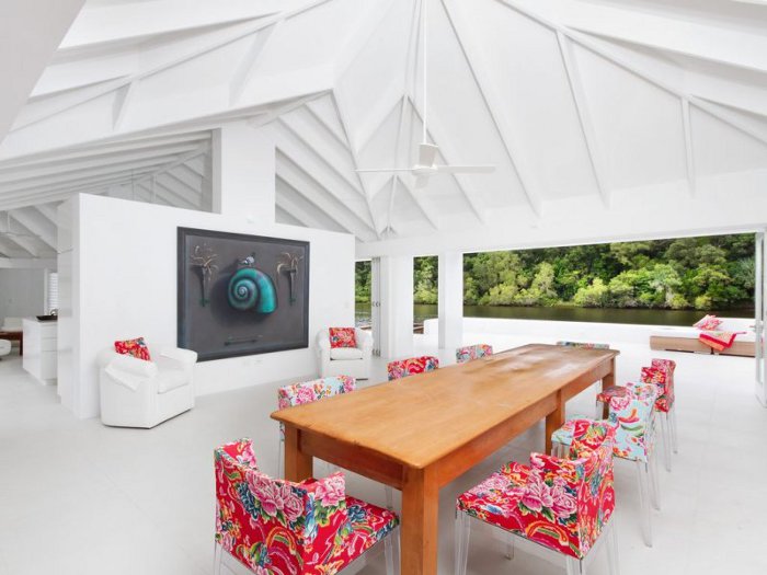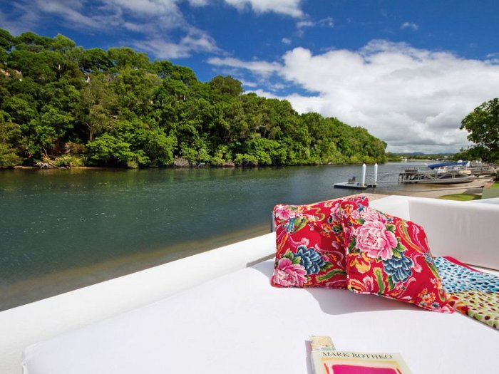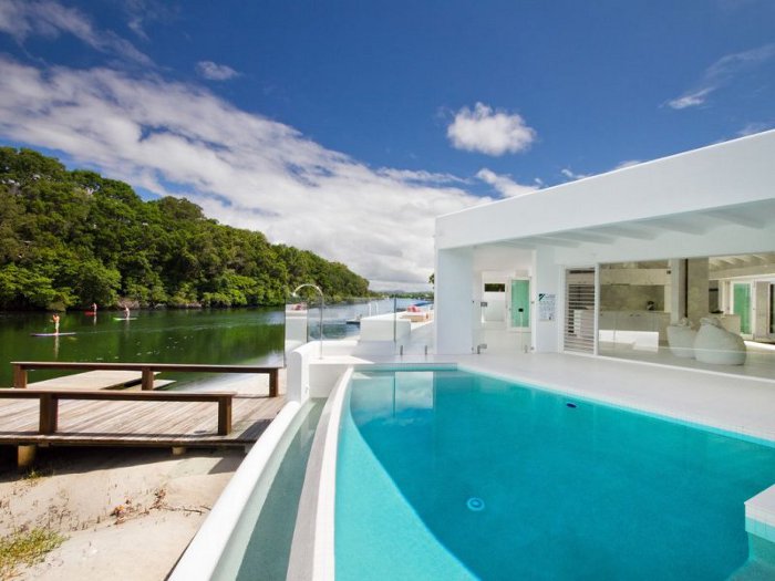 You know those movie scenes where the recently deceased turns up at the Pearly Gates in Heaven, clouds misting, dressed in white, met by St Peter, harps playing, big gates swinging open? This is what is on the other side of those gates when the clouds divide. Noosa in Queensland at its outrageous Noosa holiday house best. All that is needed to enjoy this house is a colourful bikini and a killer body and lots of ice for the drinks. Maybe I get a killer body when I die. Link for the sale listing here while it lasts.