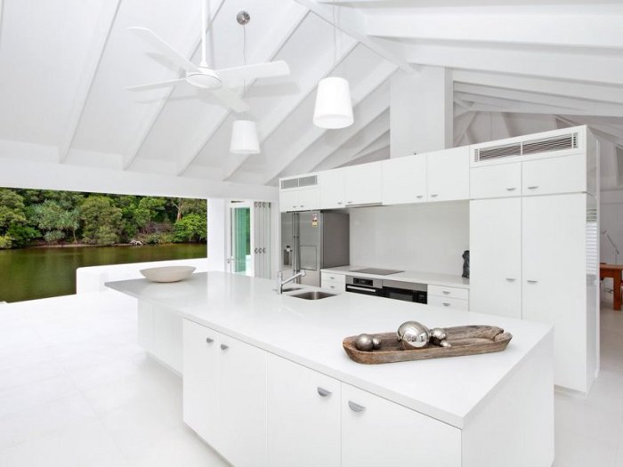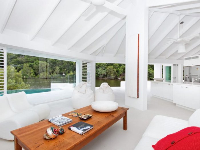 White out, please. Toooooo much white – for a house positioned on the water (with subsequent glare), the Aussie sun (full-on hole in the ozone glare – whoa what a headache. And so little personality. Another case of money a home does not make. Think of what Hare + Klein would have done with this space. Something awesome.