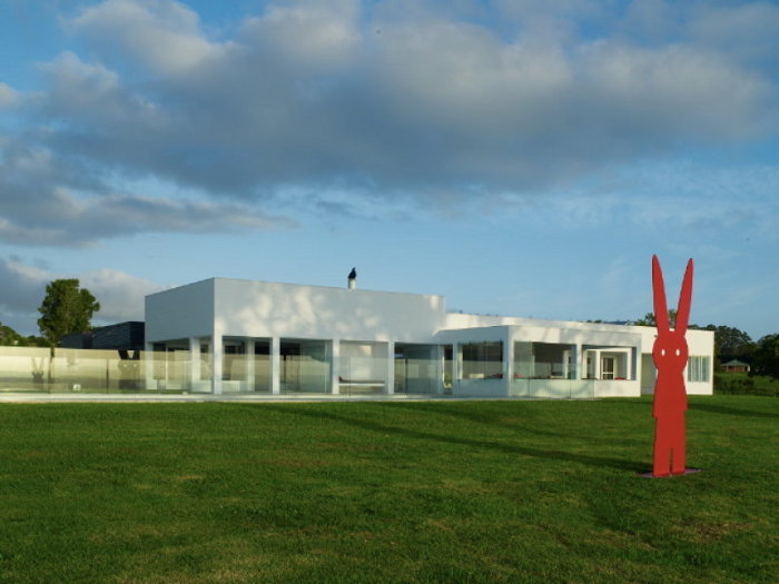 I am absolutely in awe and in love with this home, it is a real treasure of contemporary architecture and design. Thanks for this beautiful discovery and the Bunny scupture is terrific.