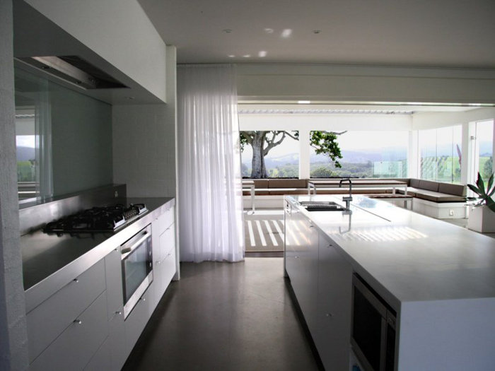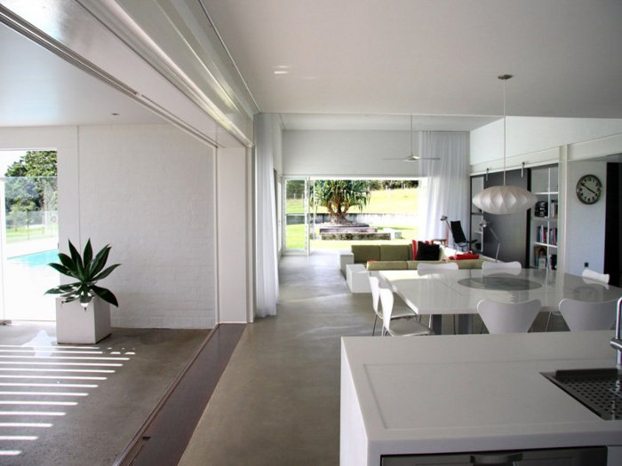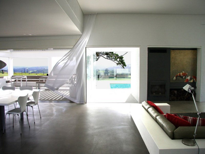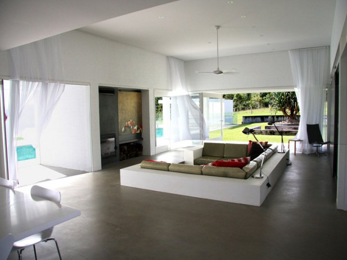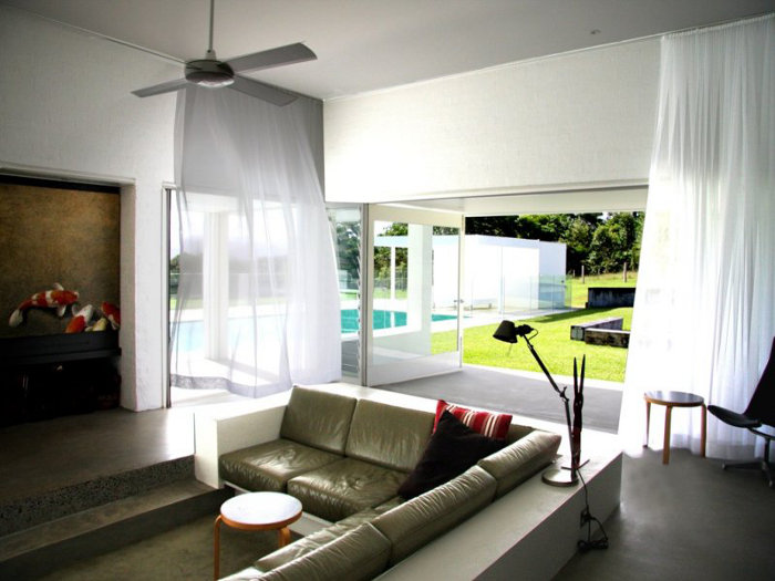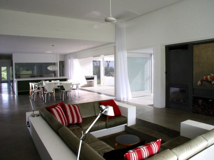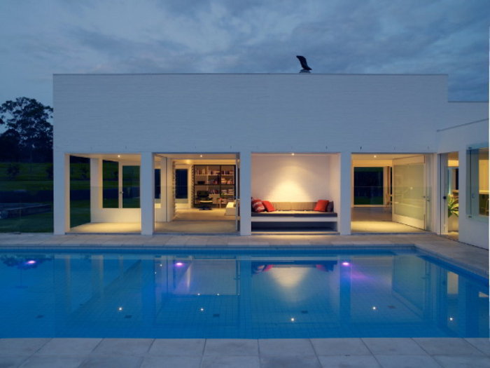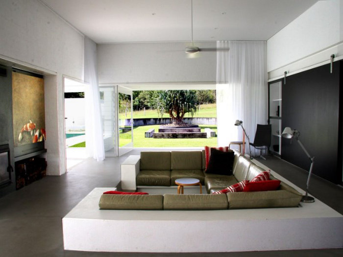 Yes it’s true. I was stalking today and came across what I think is the blogosphere’s first sighting of the Easter Bunny. Standing guard over the stunning home of architect Sharon Fraser. Modern and minimalist the house achieves a balancing act between pure white box form and everyday family needs. Look carefully at the aerial view and you will see a minimalist cubby house perfect for the littlest family member and all watched over by the giant red rabbit sculpture by Peter McLisky. I’m seriously in love with this house. The minimalism married with the whimsy all wrapped up in the fact that it sits high on a ridge behind the Northern New South Wales coastline in Federal, sigh, perfect… and it has a conversation pit! The house is called “Amileka” which if I had $6.75 million I’d be changing the name to “home”. Link here while it lasts.
