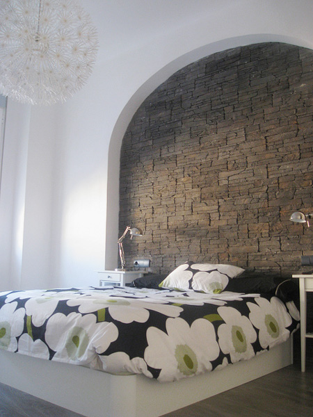 A brick exposing archway in a great minimalist bedroom…..superlove!