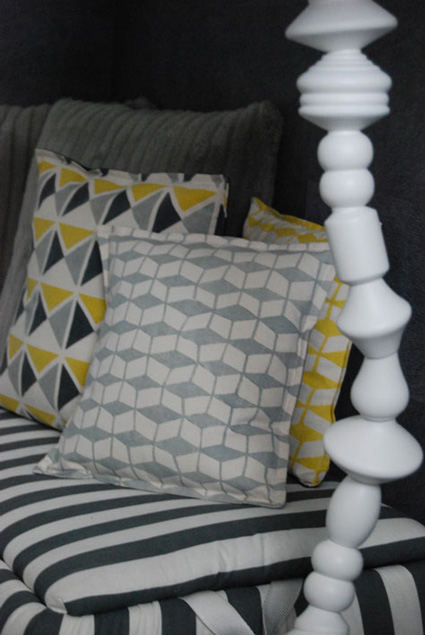 Finally, the fabulous checked cushions have been created by my dear friend ‘Mademoiselle Dimanche’, a french fabric designer that I love so much ! (here is her website… sure you will love too !)