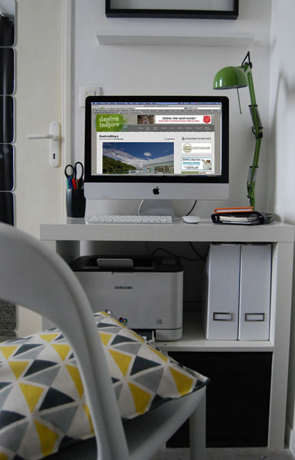 The small console-desk has been created using an Ikea Expedit bookshelf…