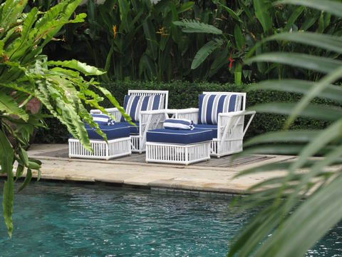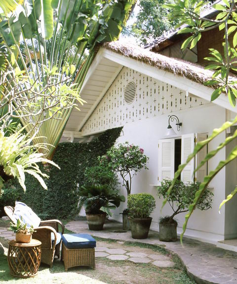 Fashion designer, artist, furniture and homewares designer, Australian icon Stuart Membery. Welcome to his piece of paradise in Bali. Stuart’s home is elegant and relaxed, catering to all the senses. A tropical paradise as it should be. A little OTT, a lot of fun Stuart’s compound consists of a main house with extensive outdoor living areas and a guest house all wrapped in the lush greenery of the tropical gardens. And of course it is the perfect showcase for Stuart’s latest range of furniture and homewares. Gorgeous rattan and wicker, carved timbers with an asian plantation touch, lashings of blue and white. I’m booking my ticket for an extended stay or at least dreaming of where to place a rattan chair or two in my place. You’ll find it all on his website.