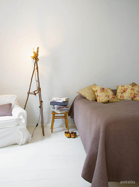 I don’t really know what to write as an intro to this post. Basically I am stressed out and preoccupied to the max and my brain is just not functioning up to par. My day job has been REALLY busy for ages, we’re trying to get plans finished for the house which is a little tough working with an architect AND designers (both of whom are swamped), I have a French test (for said day job) the day after Easter weekend that if I don’t pass may mean having to leave my team (where I have worked for my entire career as a public servant) and go back to programming – something I REALLY don’t want to do. And I f*cking hate tests, especially verbal ones. With that whining, I leave you with some photos from Avotakka, a very cool Finnish magazine. (P.S. I really want to make a floor lamp like the one in the first photo.)