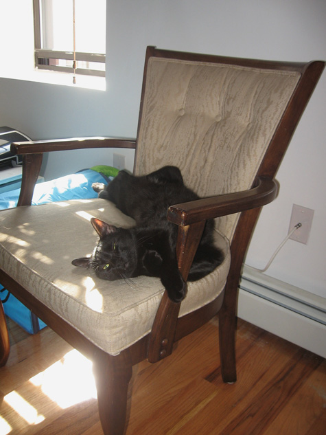 This was my 9 month old kitten Franklin (Ha!) lounging in the sun on a chair I absorbed from an old roommate. If you look closely enough, you can see his “mittens” – has an extra toe on each front paw. Only more toes to claw furniture with!