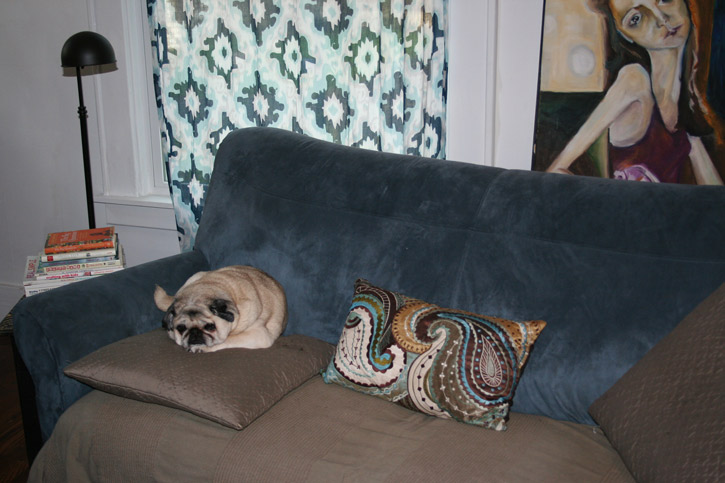 Here is one of our 4 pets, Luc the pug. He wasn’t completely relaxed while I took the photo. He was wondering what I was up too.