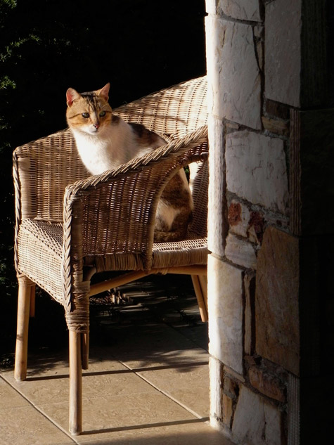 This is a “stranger” enjoying sun on my wicker chair.