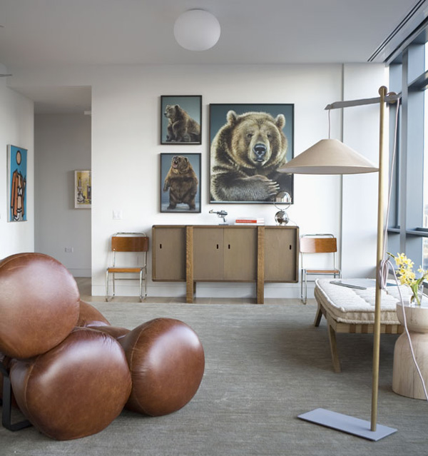 love the decor. in picture #5 (the one with the jill greenberg bear photos) there is a sofa i have been trying to track down for awhile. it is the one in brown leather. i'm a design junkie, but can't find who produces this. there is one is the restaurant area of the cosmopolitan hotel in vegas as well. even looked for the makers stamp on the bottom and was unable to track down. if anyone is familiar please, please let me know! thanks, love the blog too!