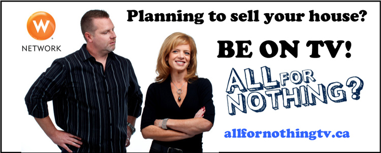 This is a special blog post for all my fellow Ottawans out there who have always wanted to be on TV and never got the chance. Mountain Road Productions in association with the W Network is planning a second season of the show All For Nothing and they are looking for Ottawa homeowners to participate. Here’s the scoop: Each episode pits homeowner against homeowner in a competition to get their homes market ready in just two weeks – and the homeowners do all the work (with help from anyone they can get their hands on, and spending as little as possible). Benefitting from free real estate and design advice (from agent Paul Rushforth and designer Penny Southam), the seller with the highest increase in value at the end of two weeks will win the commission-free listing services of Paul. (In a two week period homeowners have been able to increase the value of their homes by as much as $50,000!!) I caught an old episode the other morning and it looks like a blast! So if you’re interested check out this website for the entry form and more details. We also have an ad in our sidebar (see image above) that will take you to their site. Go Ottawa!