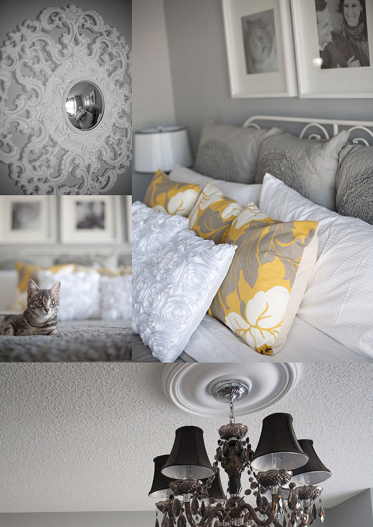 Nathan, a photographer in Edmonton Alberta, wanted to share the bedroom makeover that him and his wife Brandi executed – to perfection! It’s my favourite colour scheme – and he even included a gratuitous cat-on-the-bed photo. 🙂