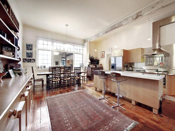 Industrial brick facade morphs into stylish inner city oasis. Love the multi-nature of this Richmond, Victoria home. Cool, edgy warehouse, classic, at times traditional interior and a walled courtyard that belies the fact that the hustle and bustle of the city is just beyond. This is one property I’d love to see professionally styled and shot for a magazine spread. I don’t think the real estate photographer does it justice. Still I’d love to live here! In my dreams. Link here while it lasts. Thanks Andrea.