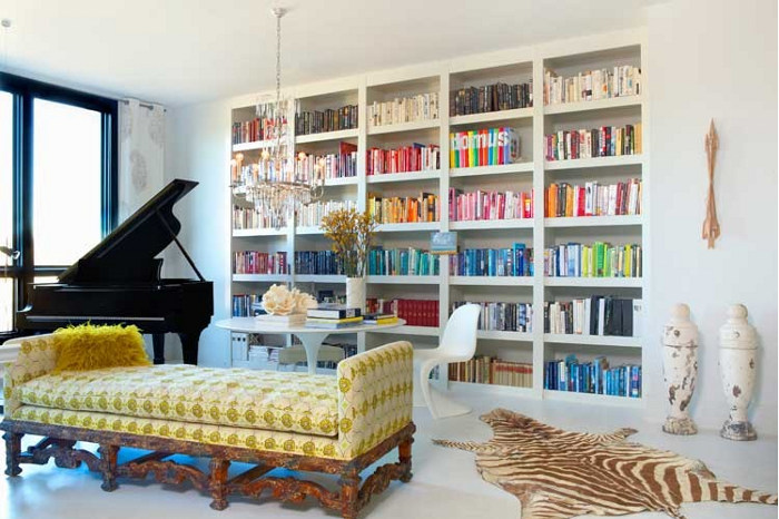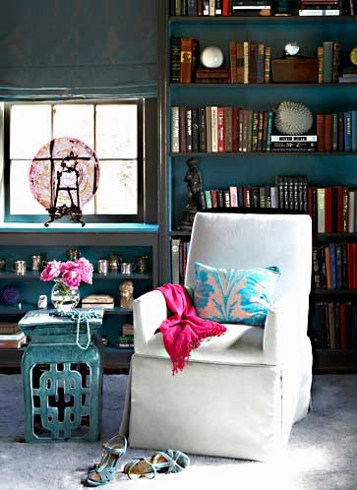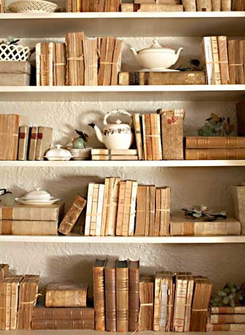 books organized by colour make me cringe. sure it looks pretty, but to me a book's worth is always primarily in its content, not its cover. sort of reminds me of those people who'd buy whole sets of leather bound books because it made their library look nice. lack of respect for the written word, in my view, but to each his own, i suppose…
