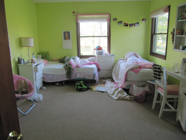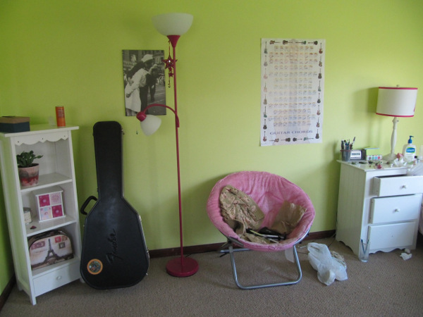 I share a room with my sister. We have two twin beds…. Sorry the room is so messy and the pictures are so low quality. I just snapped them quick before I left for work this morning. I guess my main issue is that I want it to be bright and unique, but if I get sick of it, I don’t want it to be tooo hard to change. I want to have white or other neutral colors for the walls and bedding and then just have bright fun accessories. Also, like I said, I would like to paint the side tables bright colors like turquoise maybe with some green, pink, and or purple. I’m also thinking about lighting. Something unique and fun like low hanging lamps or paper lanterns would be cool. Any ideas? Thanks!