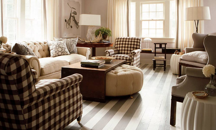 I am in awe of that first living room…that painted striped wood floor makes me giddy.