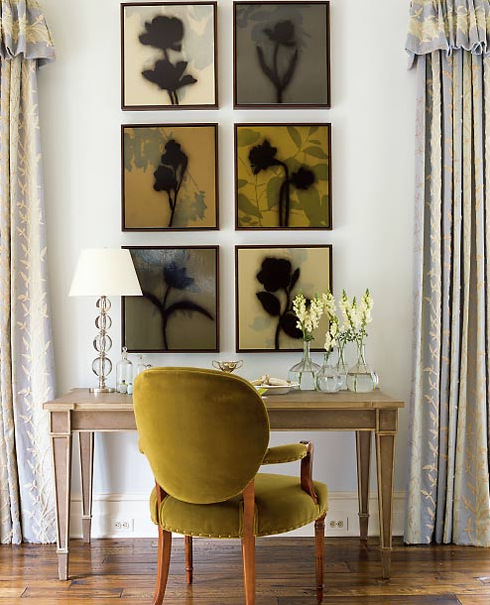 A masculine take on traditional interiors. Layering of patterns and texture. Neutrals and rich deep browns play with earthy greens and autumnal hues. Soft blues push through to grab your attention. It’s subtle but stylish. Easy elegance and feather filled comfort. High end interior design by Washington D.C. based David Mitchell. Check out his blog too for his inspirations and behind the scenes… David Mitchell Uncensored.