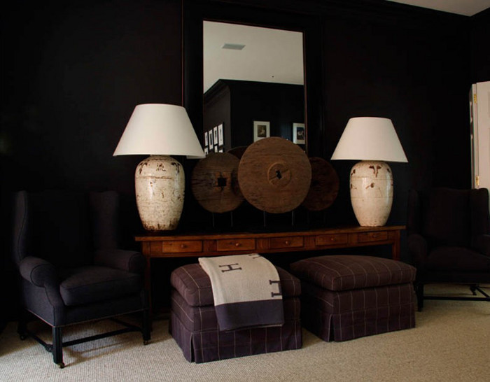 Deeply dark and masculine. Elegantly neutral. Inside and out, light and shade. Always luxurious but equally liveable. It’s linen and marble, wicker and wood, found objects and vignettes, wool, cashmere or silk, as well as hammered iron, textured wallpaper and glass. Tactile and tailored, down filled stylishness , global influences and Australian living. It’s interior designer Marco Meneguzzi. I’m in love with the dark tailored room above. Throw in a tribal rug and I’d be in heaven.