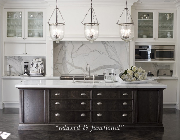 Love the Relaxed and Functional marbel kitchen! All of the wicher and textured wallpaper (I need to get rid of my orange peel walls). Not a fan of waterfall edges on islands, but you can't please everyone, right? Polish chick?