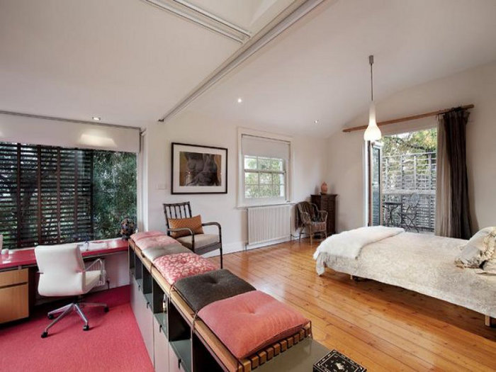 A stylish marriage between old and new, vintage and contemporary, dark and light, family space and funky space. A perfect house for stalking. Trouble is I didn’t find it. My stalking stalker Andrea did 😉 For sale here. The architect is John Wardell.