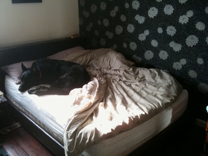 This is my rescued German Shepherd, Jet, on our new sofa. Fortunately he actually prefers the old sofa which we still have! There’s also one of him when he’d waited for me to make tea before sneaking up to bed.