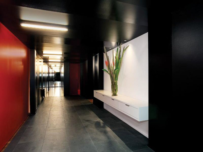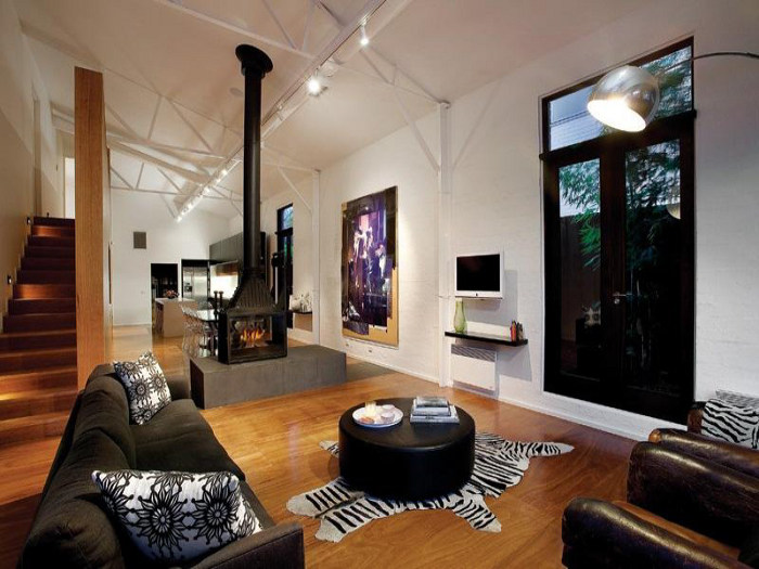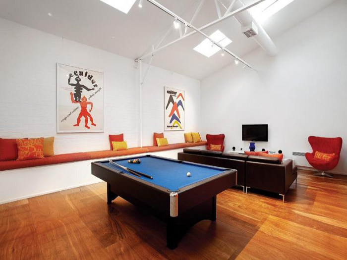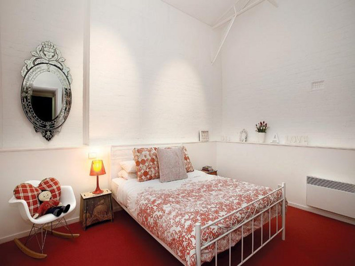 I need 48 hours in one day. I have so much going on at the moment. A full time day job and the blog for one. The painter comes in just over a week and there is still  a lot of prep work to do. I’m trying to finish a “quick” redo of my kitchen (Ha! Quick! That’s a joke!) and the day to day cooking, cleaning and shopping goes on and on. I’m trying to finish a painting to go in a group exhibition here in Ipswich next month and there has been a door sitting on trestles waiting to be painted for 2 weeks now. I have no normal Saturday post ready to go and 3 loads of washing to do. Sound familiar? I know what I’ll do! Real estate stalking post. Good idea. A warehouse perhaps? How about this one in South Yarra, Melbourne? It has a red TV room. I swear it’s the strangest thing I’ve seen this week. Strange but kind of cool. The words “red rum, red rum” keep popping into my head. See I’m rambling. Time to go.