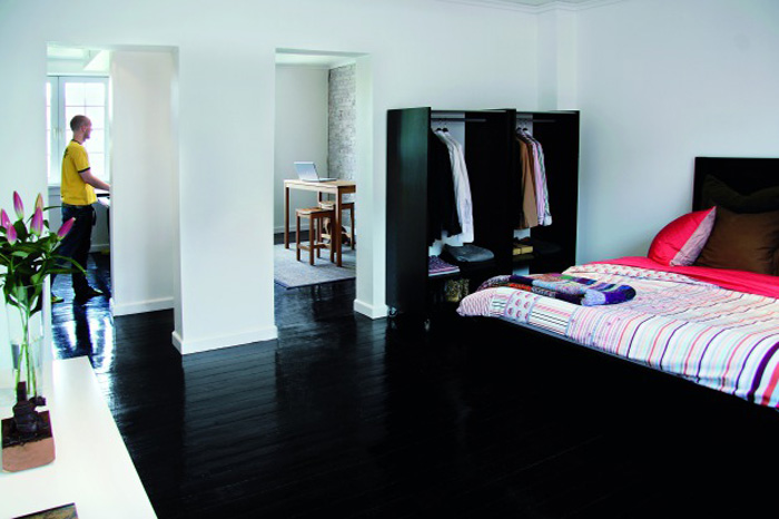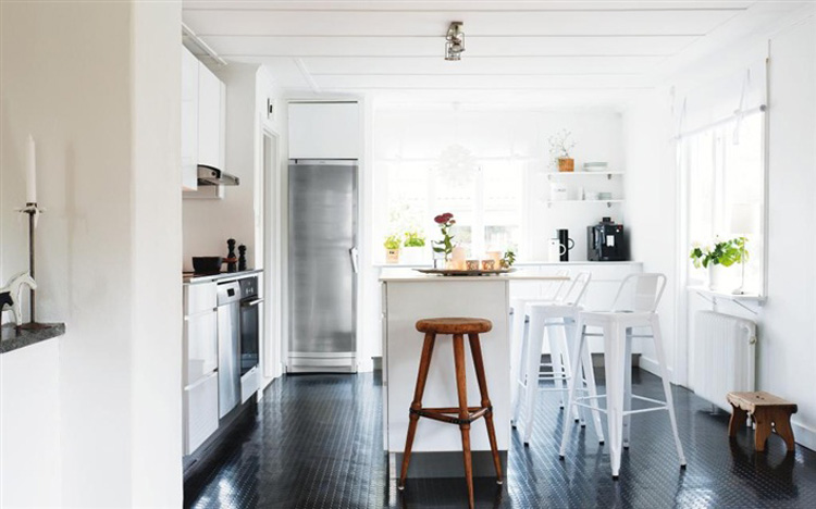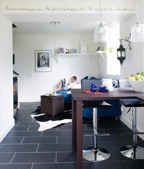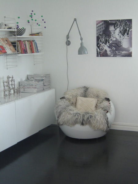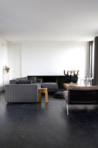 Molly wrote us last month with a request to see photos of black floors. I think black floors are HOT, and one day, when I do not have 7 cats, I shall have black floors somewhere in my home. (Interestingly, most of these are from Scandinavian websites).