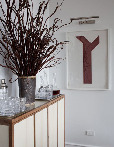 Like it when large pieces of art are used in spaces – the Faye Dunaway photo is a nice touch.
