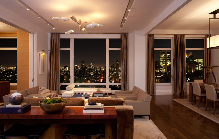 I love the interiors..but I must say that THAT is a magnificent view of the city at night! I'd give anything to have a view like that. 🙂