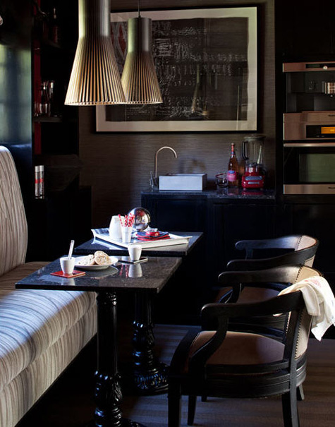 Really love the banquet seating in the dark bistro kitchen…it has such a great vibe 🙂