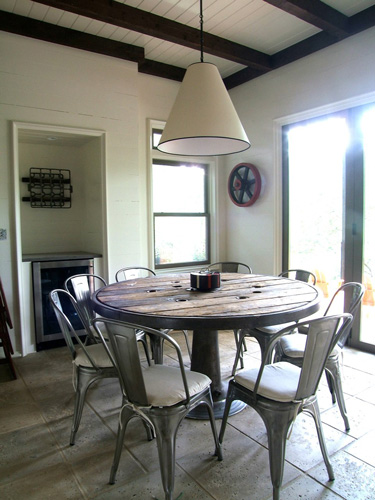 I am in love with the mixture of styles! Especially the metal chairs around the rustic wood table.
