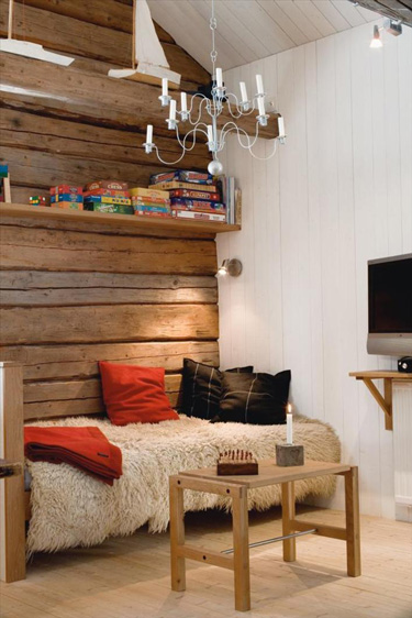 It turns out my stash of photos did not include many log home interiors. So I gathered up those and included some that feature wood panelling or whatever wood surfaces I could find that might help give Shannon (ok, and Jack – LOL) some options.