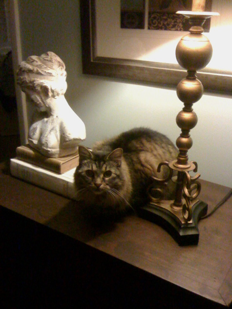 This is one of my 4 kitties, Penelope. She is on a 4-drawer chest in my entryway.