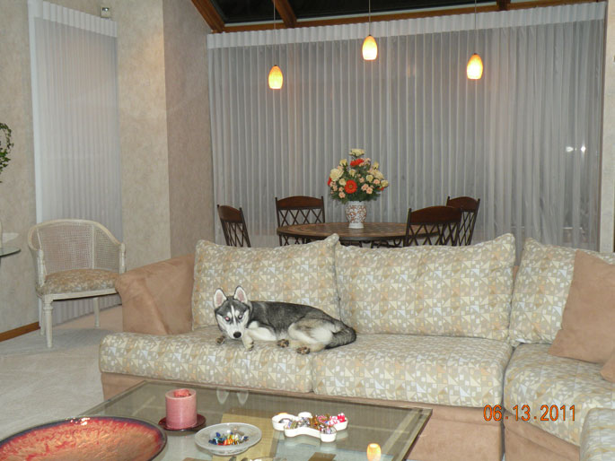 This is Summer whose finds the greatest comfort is sleeping on a clean white towel lain on a animal print chair. We try to explain her that it’s not a real animal’s skin, but, she seems to feel differently.